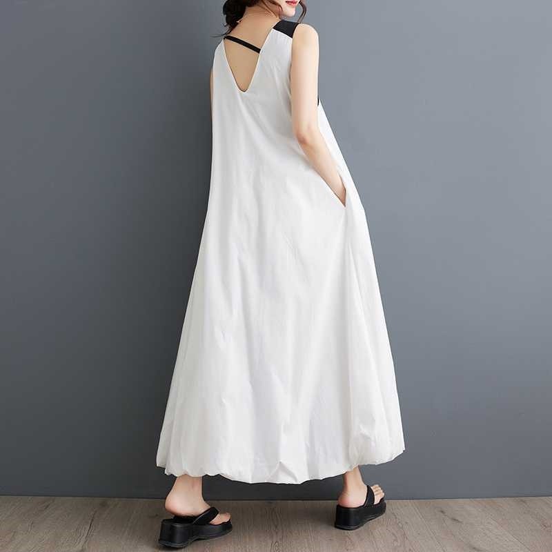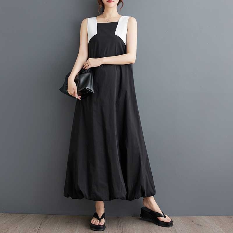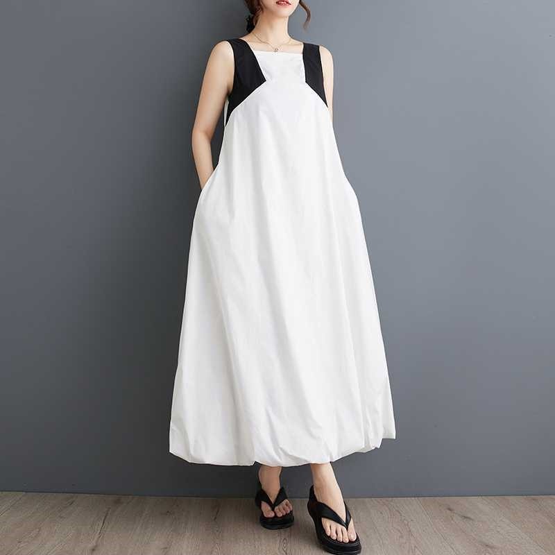 Sleeveless Color Block Puff Flower Bud Vest Dress