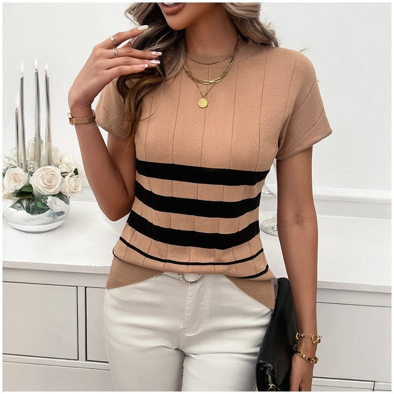 Slim Fit Striped Knit T-Shirt