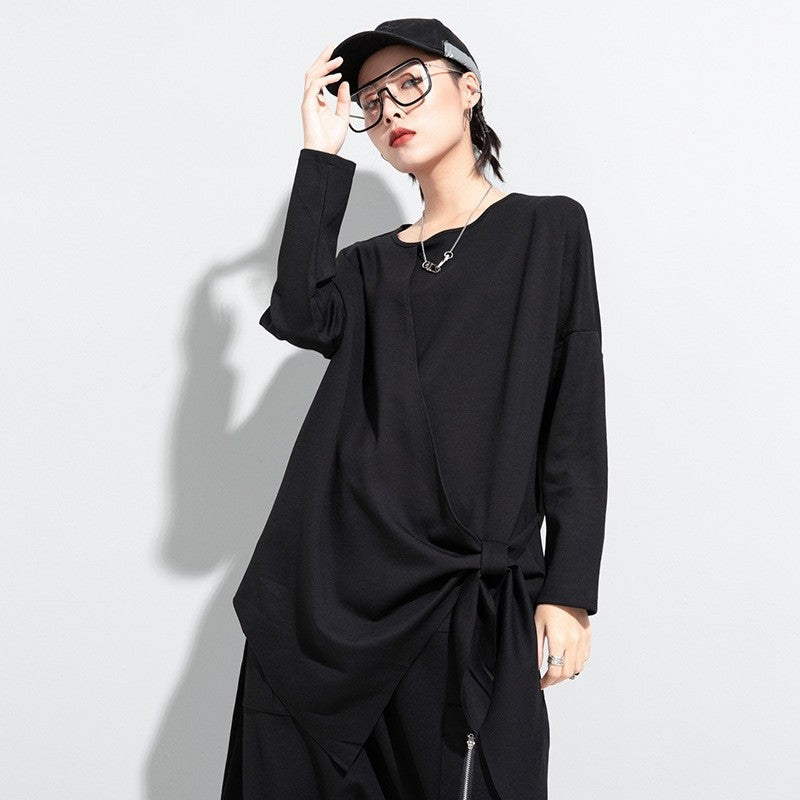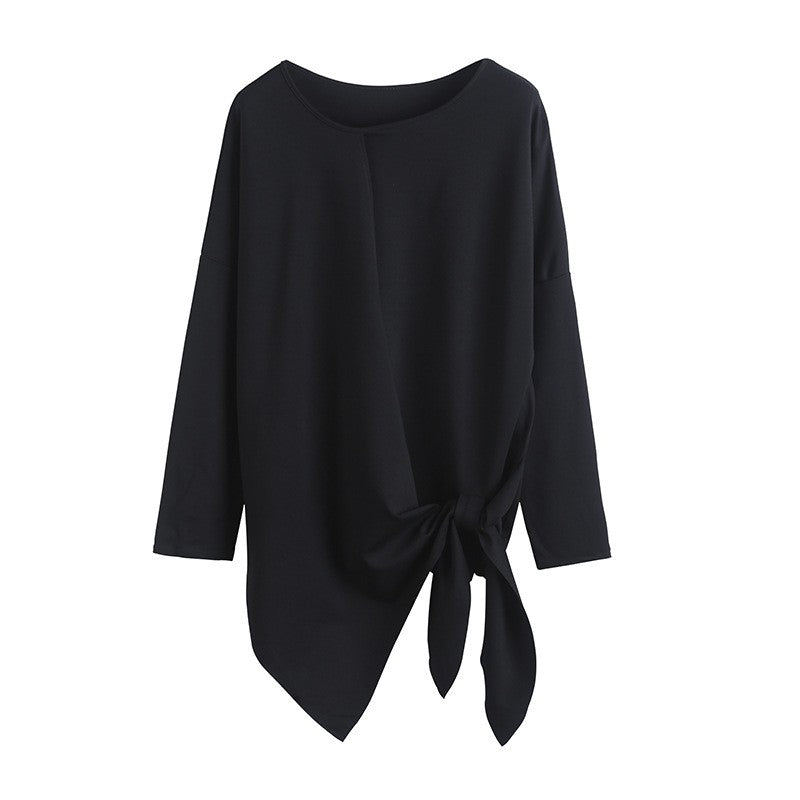 Solid Color Butterfly Bow Loose Long Sleeve T-Shirt