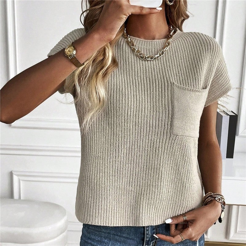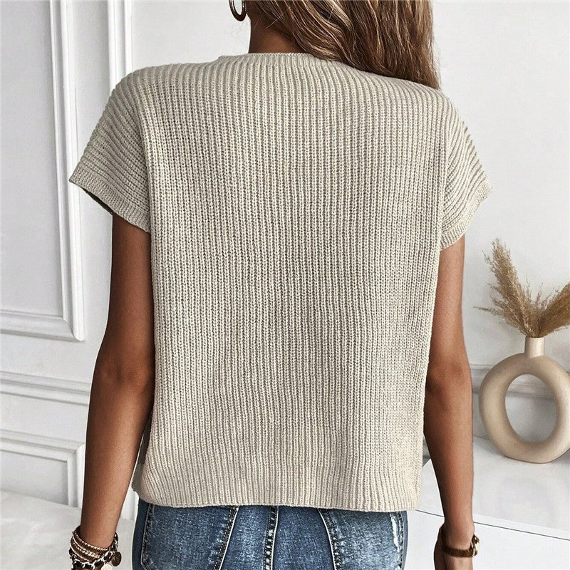 Solid Color Casual Knit Short Sleeve T-Shirt