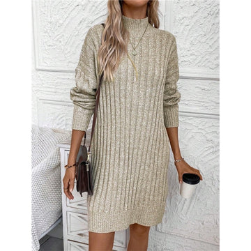 Solid Color High Neck Long Sleeve Knit Bodycon Dress
