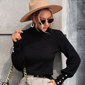 Solid Color Long Sleeve High Neck Casual Loose Pullover Knitted Sweater