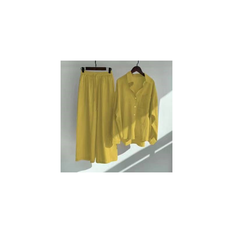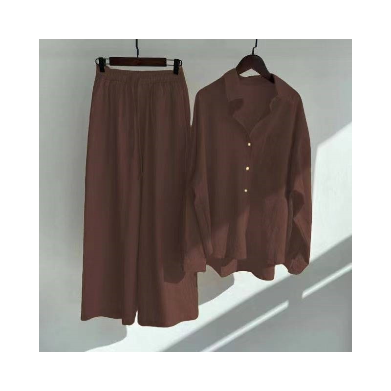 Solid Color Long Sleeve Lapel Single Breasted Blouse And Pants Loose Two Pieces Suit