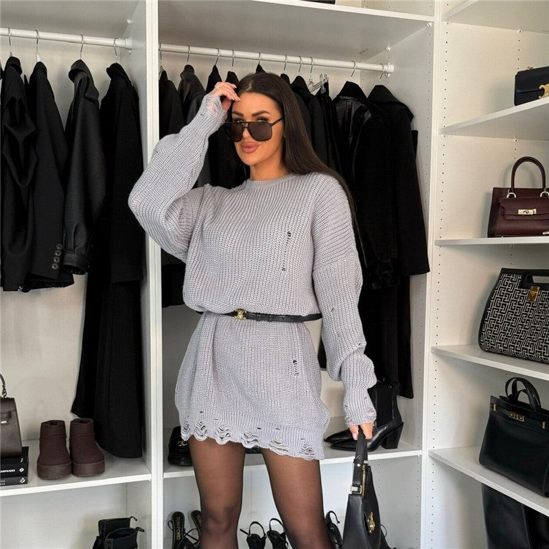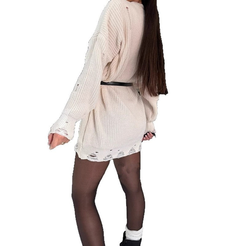 Solid Color Loose Round Neck Long Sleeve Sweater