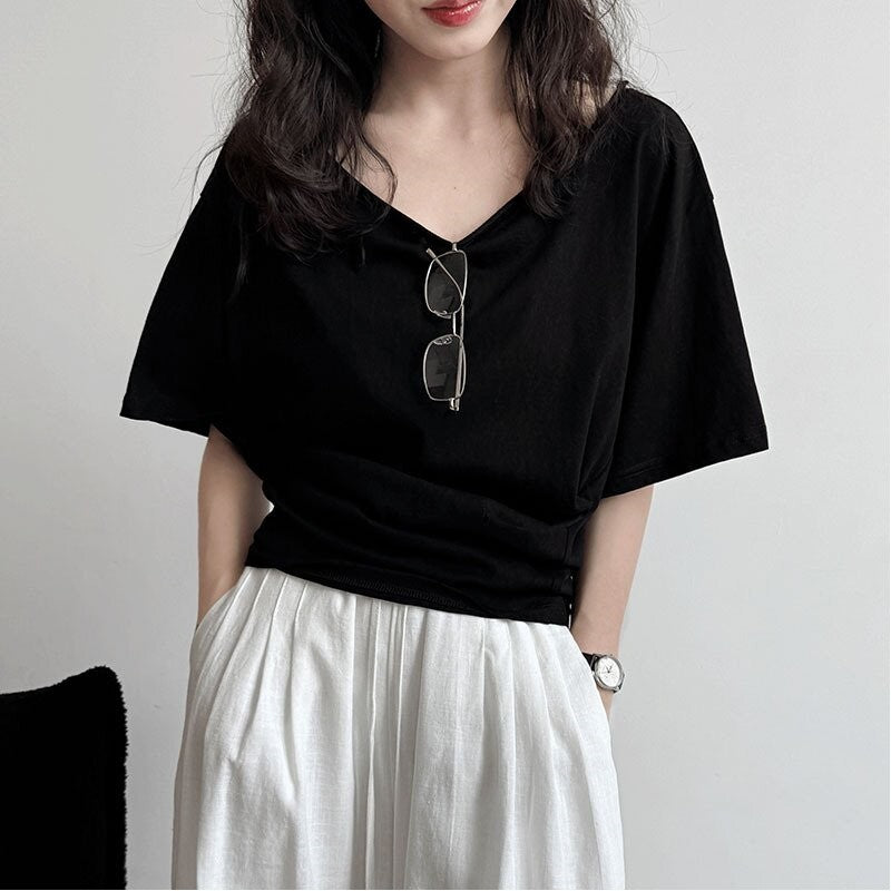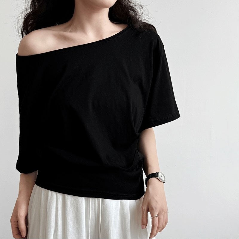 Solid Color Off Shoulder Short Sleeve Tshirt