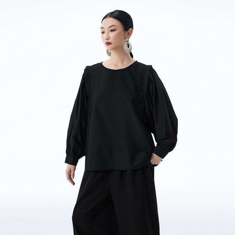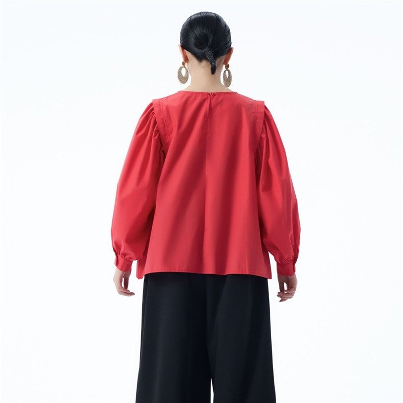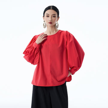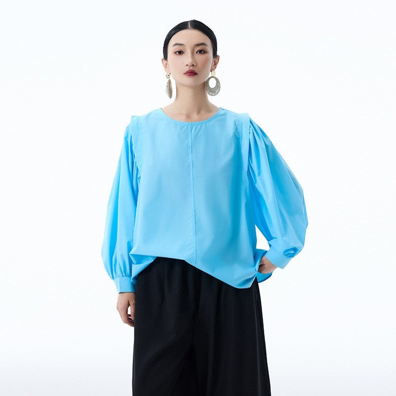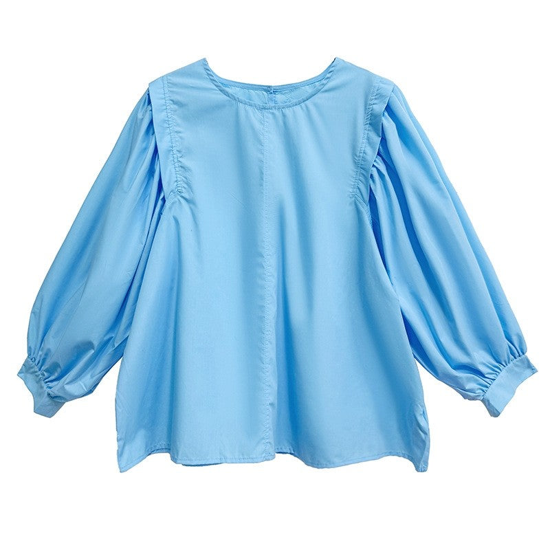 Solid Color Patchwork Puff Sleeve Loose Shirt