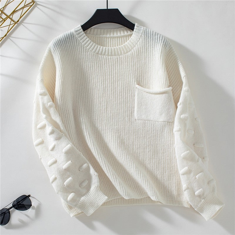 Elevate your wardrobe with this chic Solid Color Pocketed Pullover Sweater, perfect for any occasion - from casual outings to a night out. Crafted from high-quality Dacron, this sweater exudes an Artistic Retro vibe with Girlish Sweetness and Light Maturity. The Round