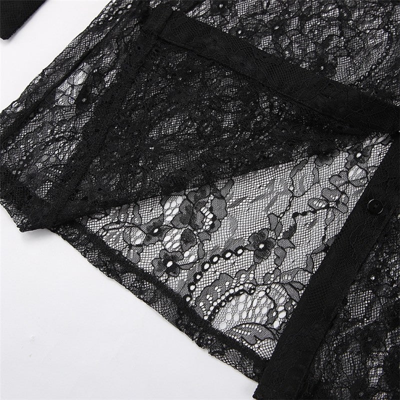 Feature:Buttoned,Washable,See-Through,Solid Color,Lace