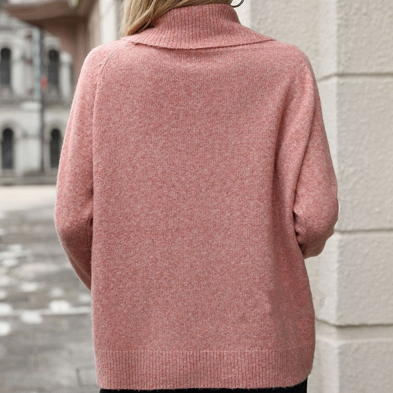 Solid Color Stacked Neck Loose Long Sleeve Sweater
