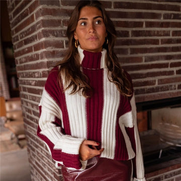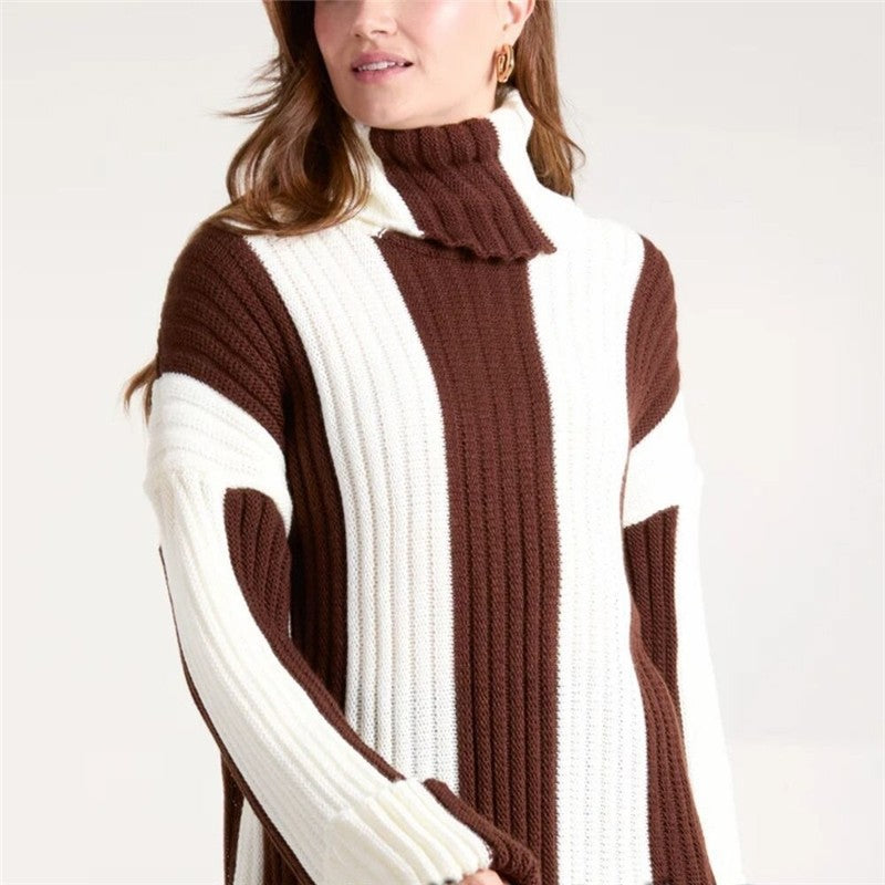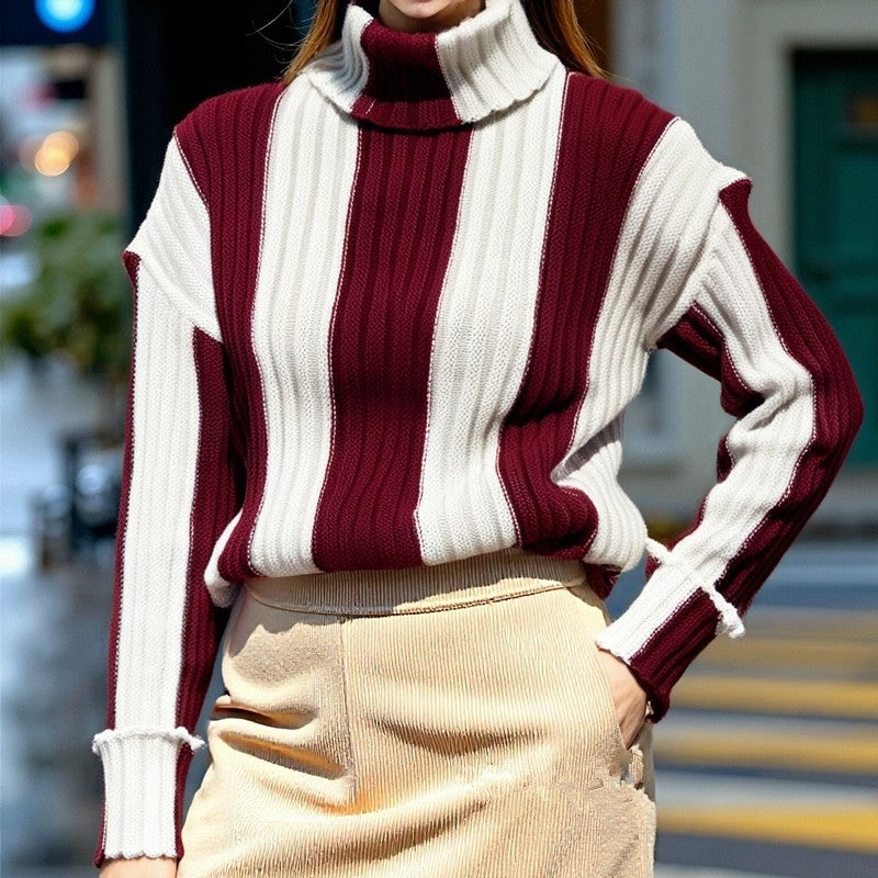 Striped High Neck Long Sleeve Sweater