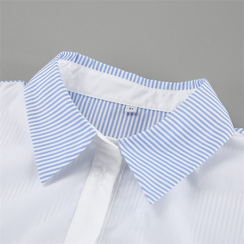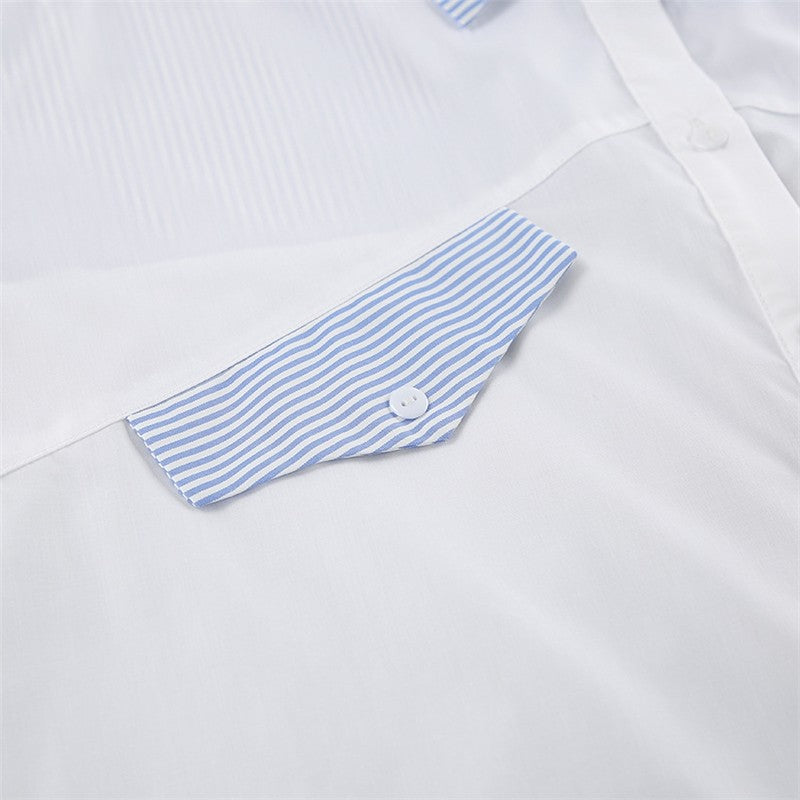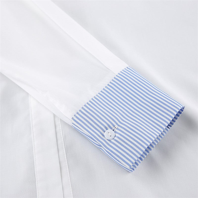 Striped Patchwork Long Sleeve Lapel Single Breasted Casual Loose Blouse