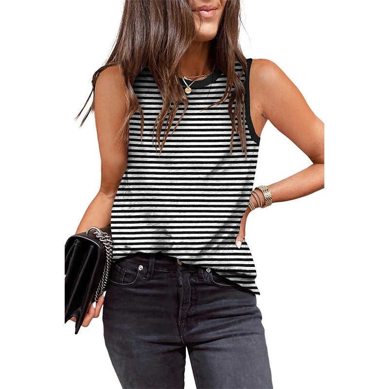Striped Sleeveless Round Neck Vest