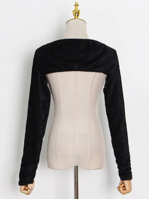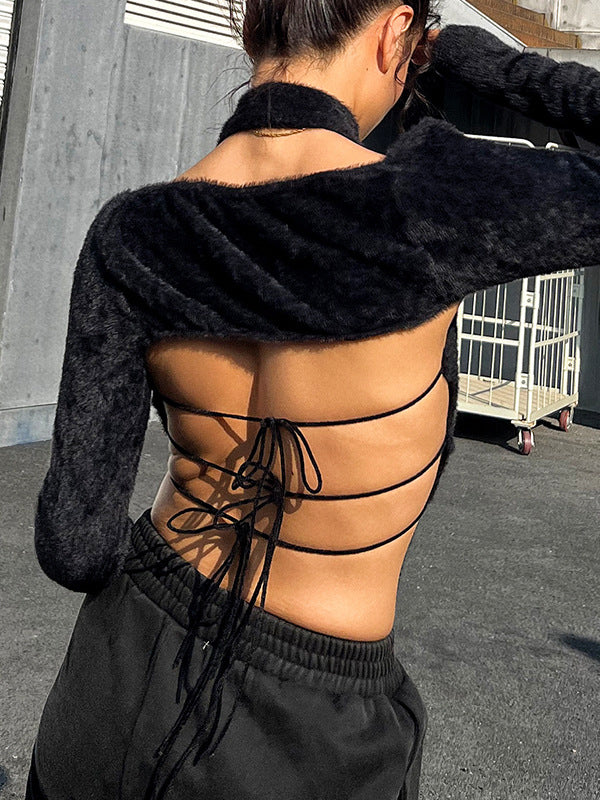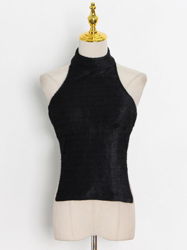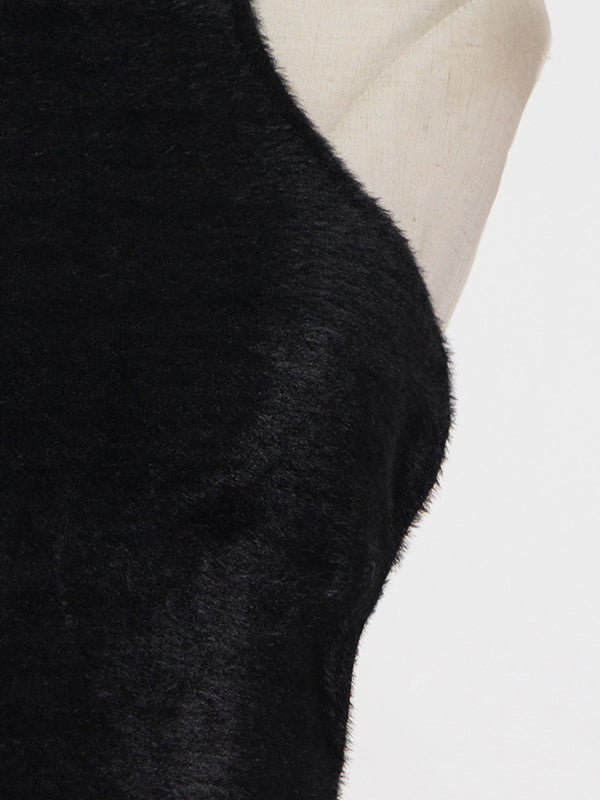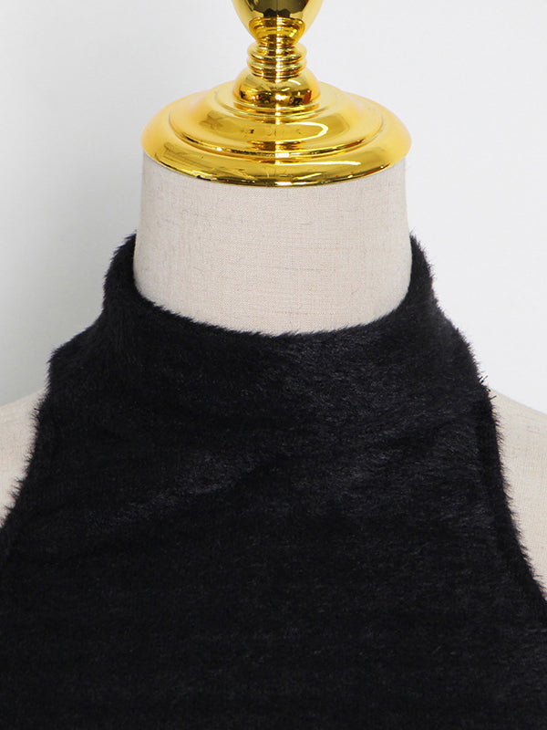 Stylish Black Bandage Halterneck Sweater Two Pieces Set