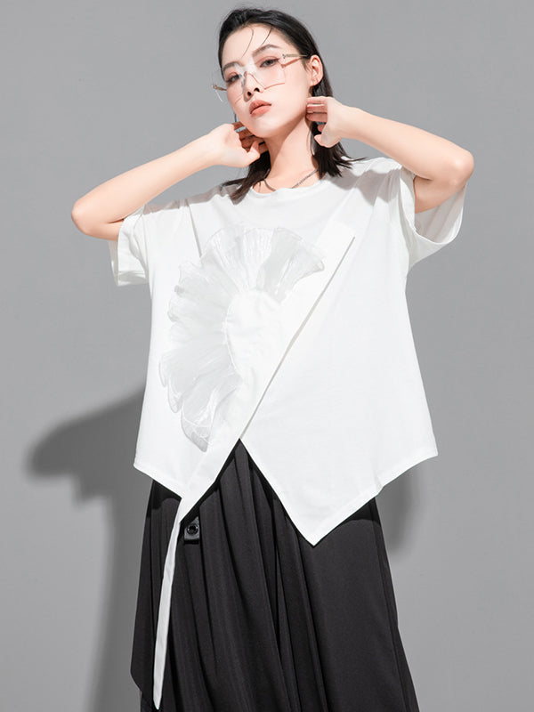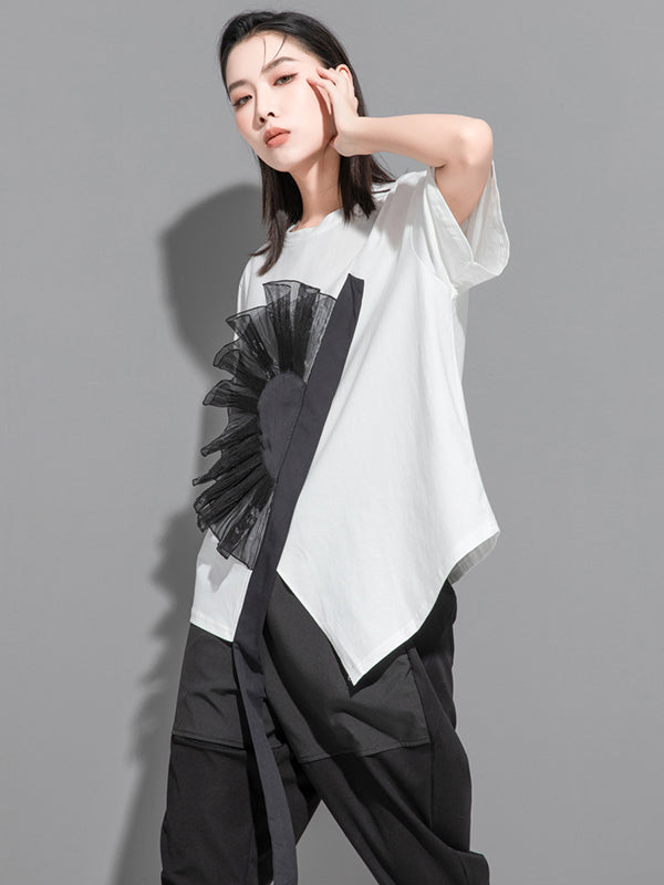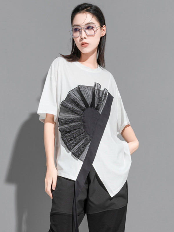 Stylish Black White Irregular Applique T-Shirt