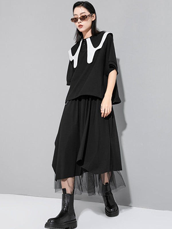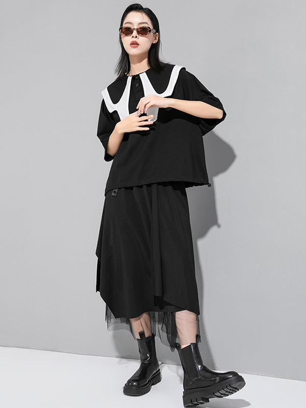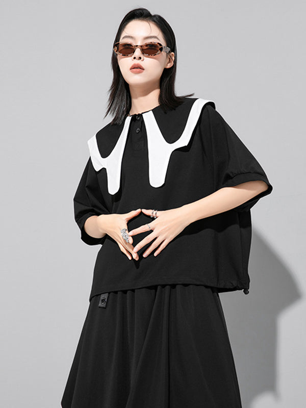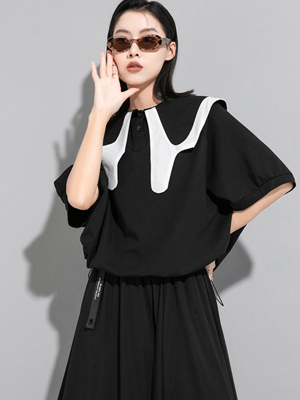 Stylish Contrast Color Split-Joint Short Sleeves T-Shirt