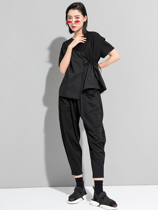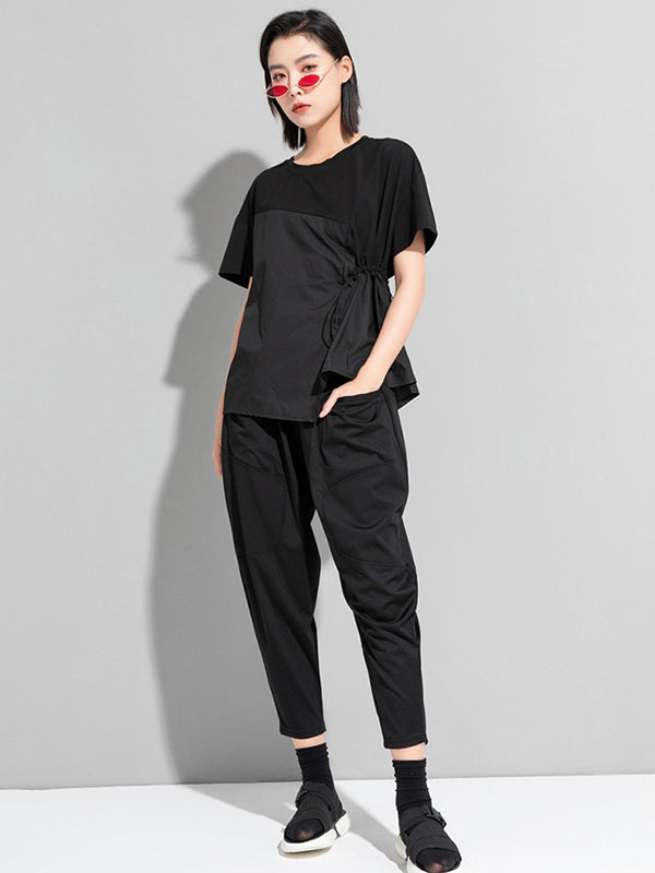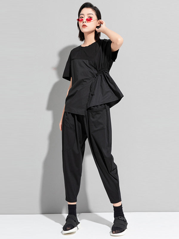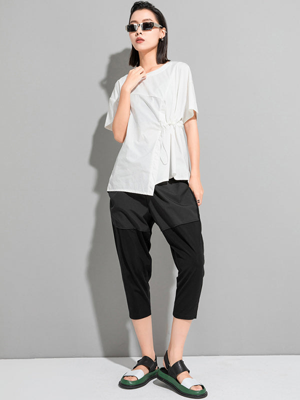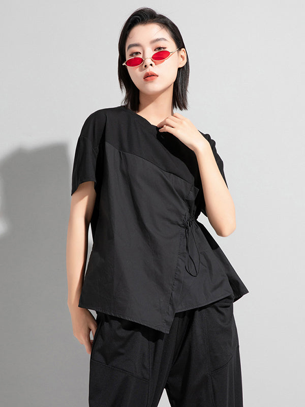 Stylish Irregular Drawstring Split-Joint T-Shirt