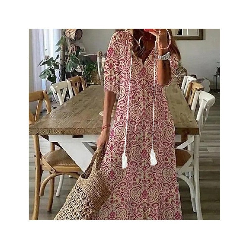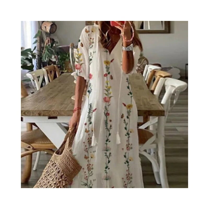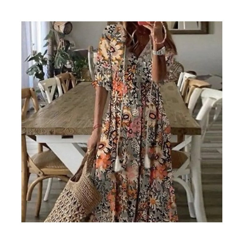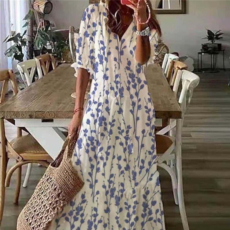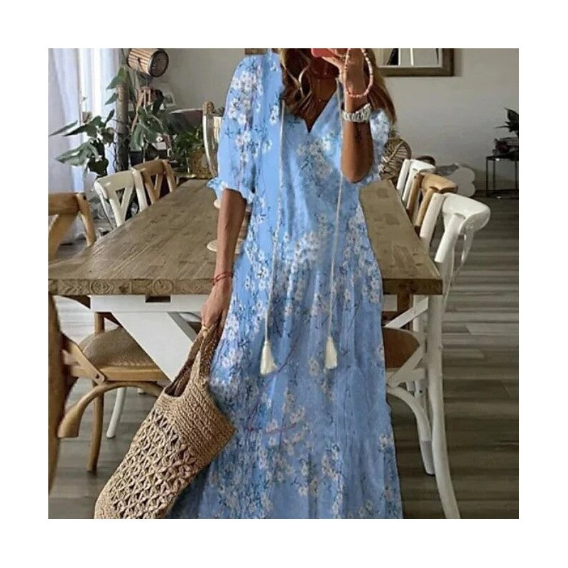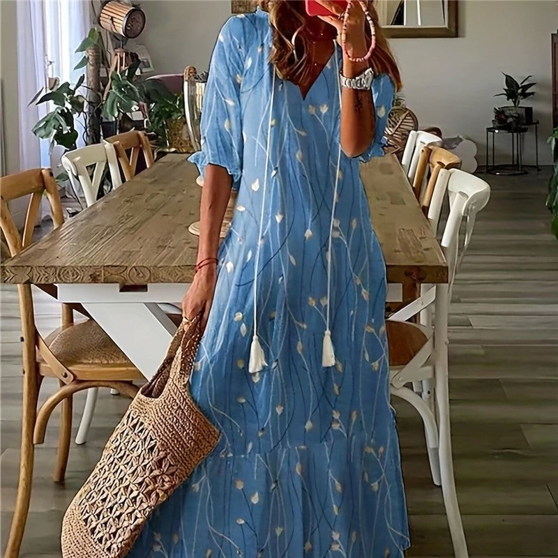 V Neck Ruffled High Waist Long Dress