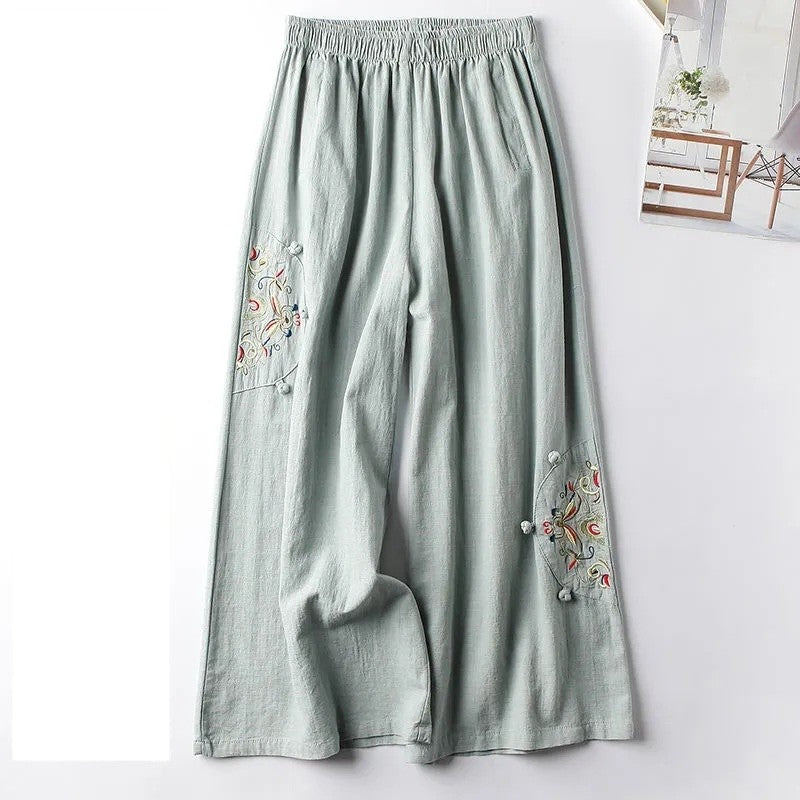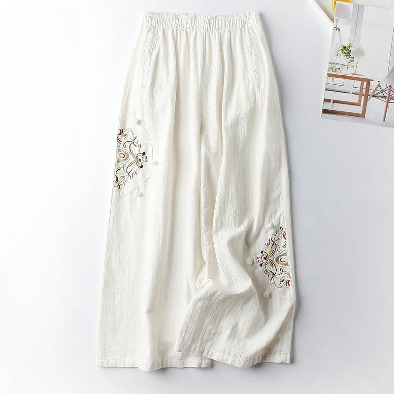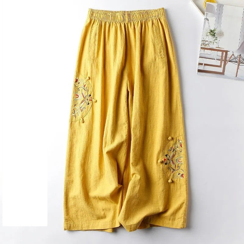 Vintage Embroidered Wide-Leg Cropped Pants