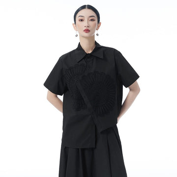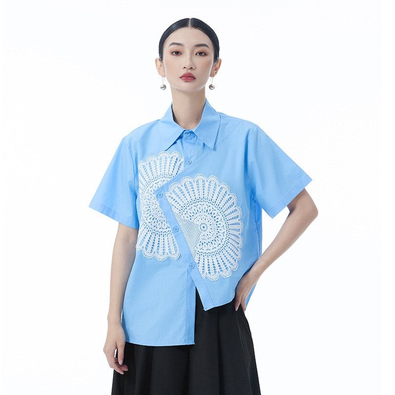 Vintage Lace Patchwork Asymmetrical Short Sleeve Shirt