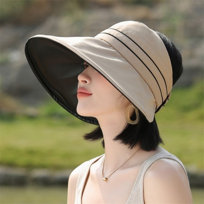 Women Summer Black Gel Wide Brim Sun Hat UV Protection