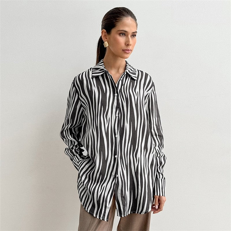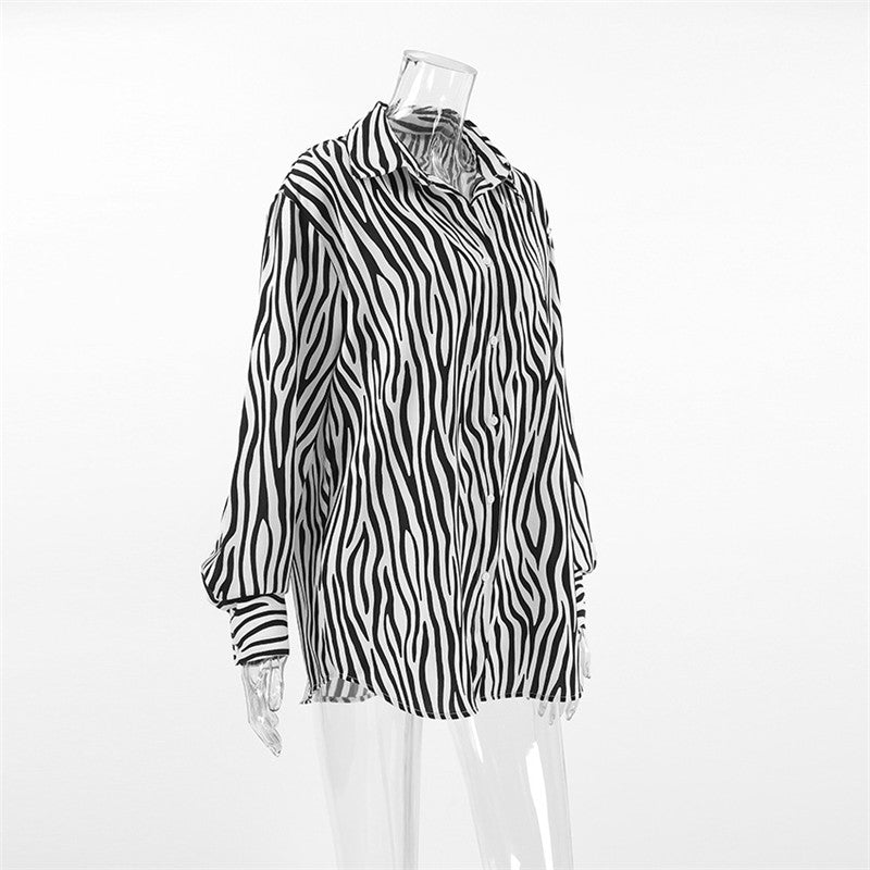 Zebra Print Loose Collar Shirt