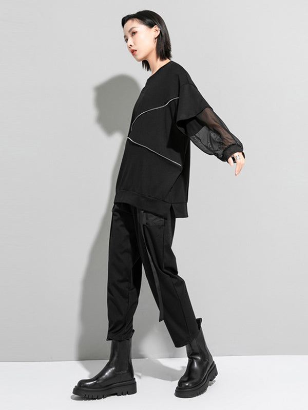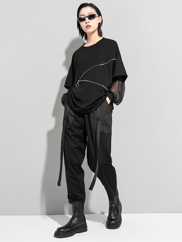 Zipper Splicing Gauze Sun Protection Long Sleeve T-Shirts